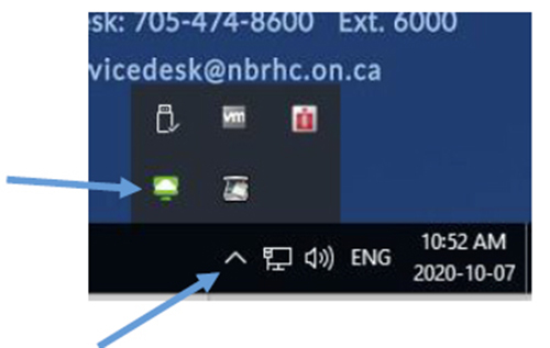 You can open the client from the system tray. Click the up arrow located in the system tray (far right of the taskbar). Then double click the application hub (Horizon Client) icon.